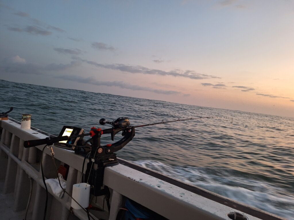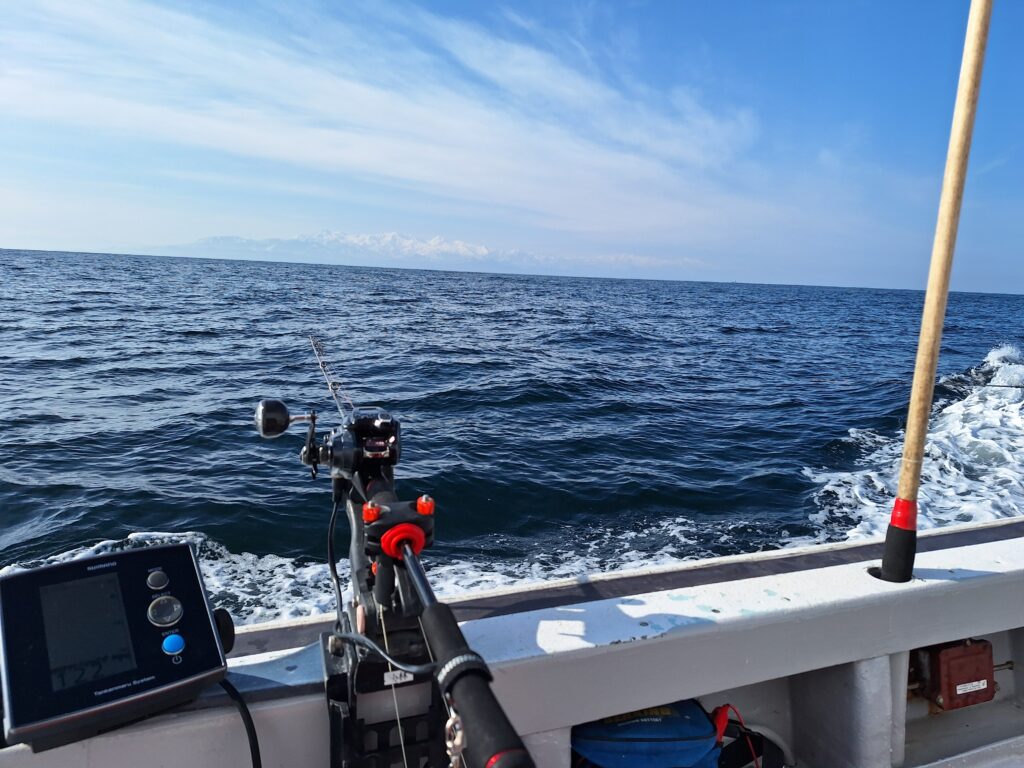 昨日狙ったポイントの水深が122~125m程度で、状況に関しては、潮の流れはゆっくりとしていた感じで、うねりが若干残ってはいたものの、風はっていうとほとんどなく、朝一の第一投目では、ラインがまさにバーチカル気味になってしまい、若干心配してしまう場面もあったほどでした。