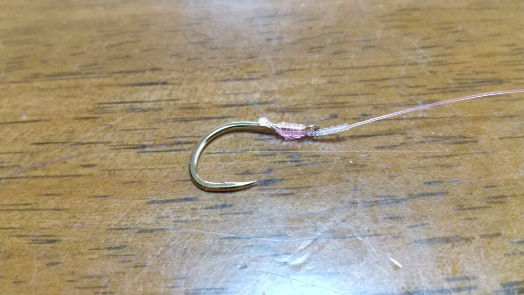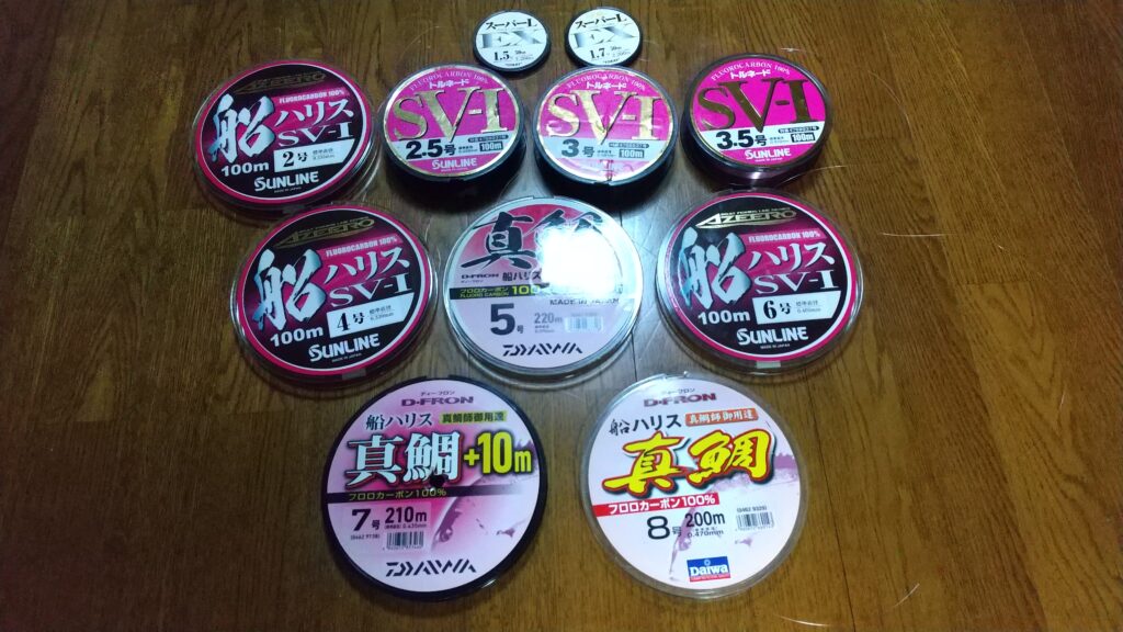 3)ハリス長が全長10mのケース→上ハリス6~8号9m+ウエイトスイベル-G2+下ハリス3~5号6m+マダイ針10号前後