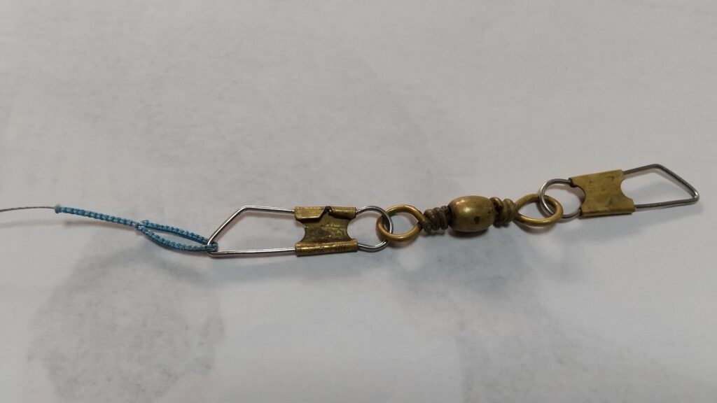 そんな事もあって、永い間私は、リールに巻いてある道糸の先端部分を、編み付けを施してルーブ(輪)を作り、それに大きめなダブルスナップサルカンを介して天秤に連結させています。