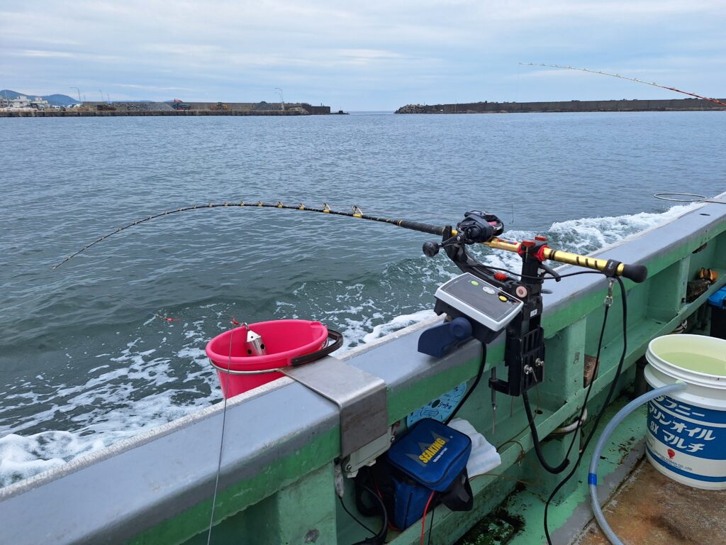 ※コマセバケツ(コマセを入れておく容器)の設置位置は、左舷の釣り座ではロッドキーパーの風下側である左側、右舷の釣り座ではロッドキーパーの風下側である右側に設置する
