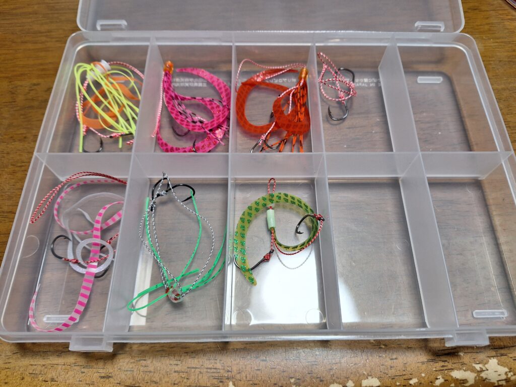 ◇赤黒、オレンジ、レッド等なんですが、はっきり言って実際に試してみなければ分からないのが実態のようで、タイラバヘッド同様、事前にタックルボックスの中には出来る限り数多く忍ばせておきたいものです。