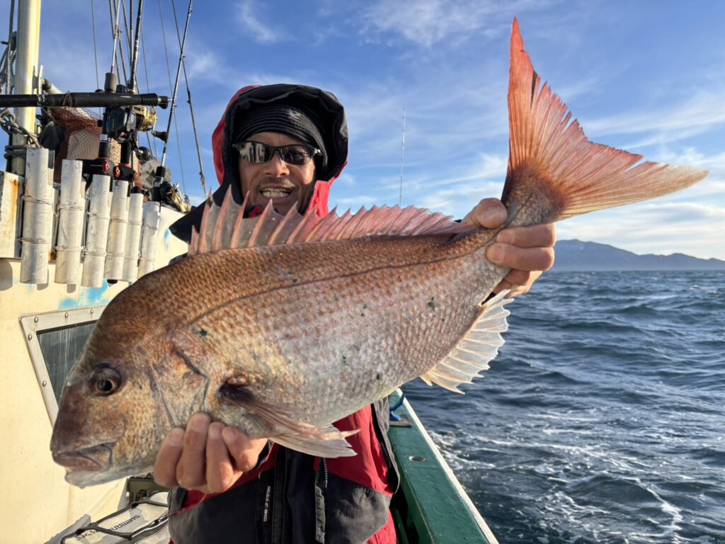 再三お伝えしている通り、ディープタイラバ釣りは特定の錘を使わずにタイラバヘッドの重さだけで仕掛け全体を海底まで落下、着低させた後、即一定の棚まで等速で巻き上げ、アタリがなければ再び仕掛け全体を海底に落下させ、再び巻き上げ、これを繰り返しながらマダイのアタリを待つといった、ある意味極めてシンプルな釣りと言えるようで、特にビギナーの釣り手の方には極めて入り易い釣りである事は間違いないようで、その一方、風の強さや潮の早さ、狙うポイントの水深、マダイの活性度、浮き具合等、各状況次第でのタイラバヘッドの重さ、形状、カラー、素材、更にはタイラバヘッド付近に介する各種ネクタイ、スカートの種類、カラー、形状、加えて針先に介するワームの種類、有無、更に更に巻き上げスピードの変化、探る棚の範囲等、各状況次第での各釣り手の判断、選択次第で大きく釣果に差が出てきてしまう為、当然の事ながら極めて奥深い釣りである事は間違いないようで、それがこの釣りの最大の魅力の一つであるようです。