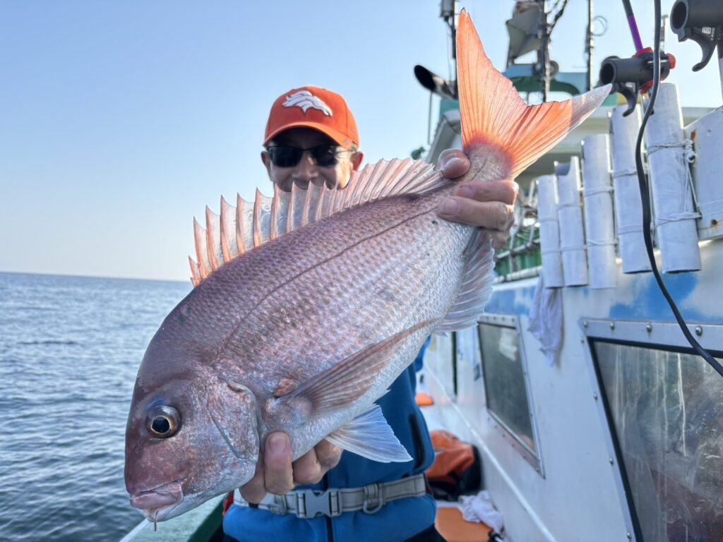 再三お伝えしている通り、ディープタイラバ釣りは特定の錘を使わずにタイラバヘッドの重さだけで仕掛け全体を100mを超えるような海底まで落下、着低させた後、即一定の棚まで等速で巻き上げ、アタリがなければ再び仕掛け全体を海底に落下させ、再び巻き上げ、これを繰り返しながらマダイのアタリを待つといった、ある意味極めてシンプルな釣りと言えるようで、したがって特にビギナーの釣り手の方には極めて入り易い釣りである事は間違いないようで、その一方、風の強さや潮の早さ、狙うポイントの水深、マダイの活性度、浮き具合等、各状況次第でのタイラバヘッドの重さ、形状、カラー、素材、更にはタイラバヘッド付近に介する各種ネクタイ、スカートの種類、カラー、形状、加えて針先に介するワームの種類、有無、更に更に巻き上げスピードの早遅の変化、探る棚の範囲等、各状況次第での各釣り手の判断、選択次第で大きく釣果に差が出てきてしまう為、当然の事ながら極めて奥深い釣りである事は間違いないようで、それがこの釣りの最大の魅力の一つでもあるようです。